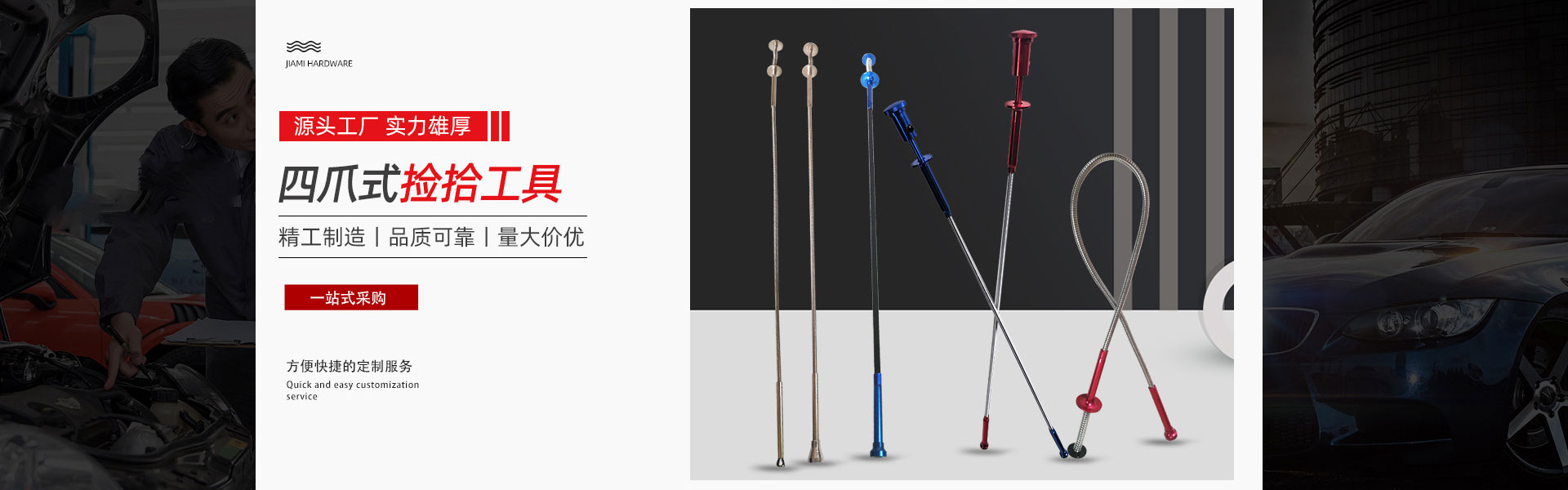 宁波鄞州迦密五金厂位于鄞州东部瞻岐,地处鄞州与北仑的交界,距宁波约35公里。瞻岐背靠福泉山,面临象山港,东邻北仑,这里地理位置优越,水陆交通方便。经过迦密员工多年不懈努力,已成为一家专业生产捡拾器、抓取器、伸缩检查镜、磁碗、撬棒等各种汽车维修工具及不锈钢伸缩挠痒器,焊接辅助工具,长铰链、弹簧片、卷簧、五金附件等产品定制及生产型企业。